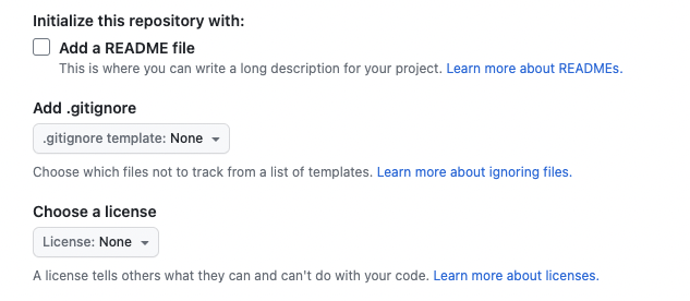 Then, create a new repository on GitHub.com. Do not initialize the new repository with README, license, or gitignore files.